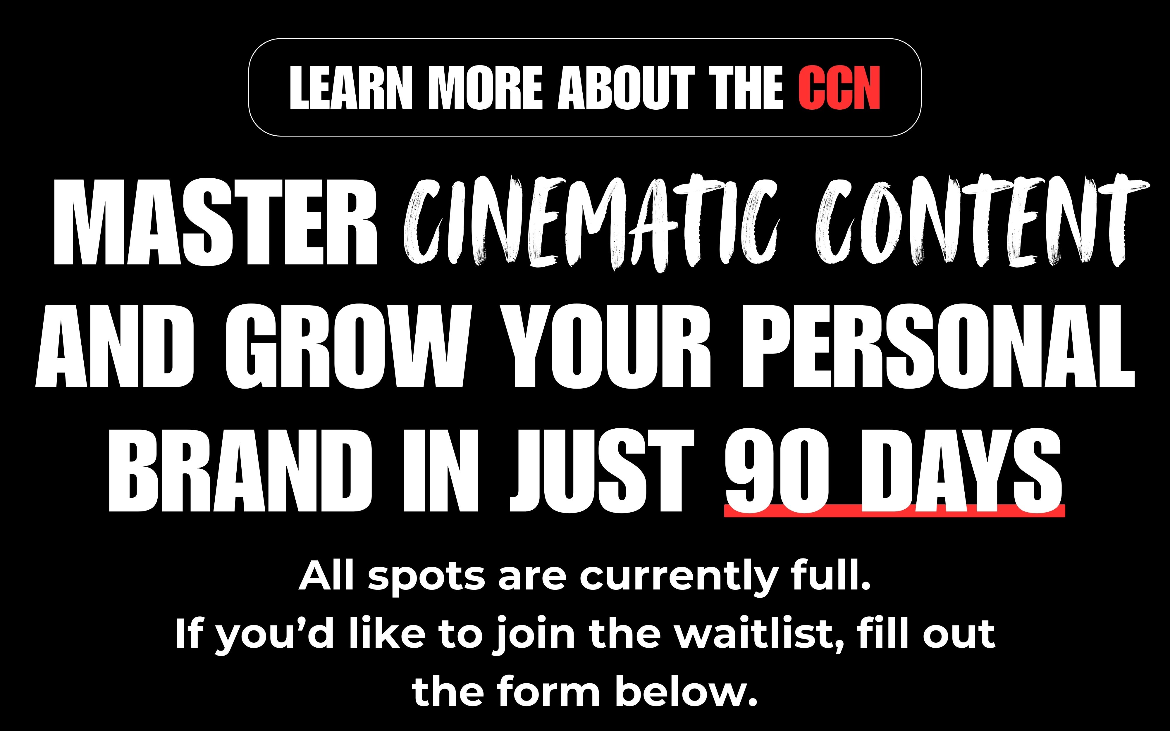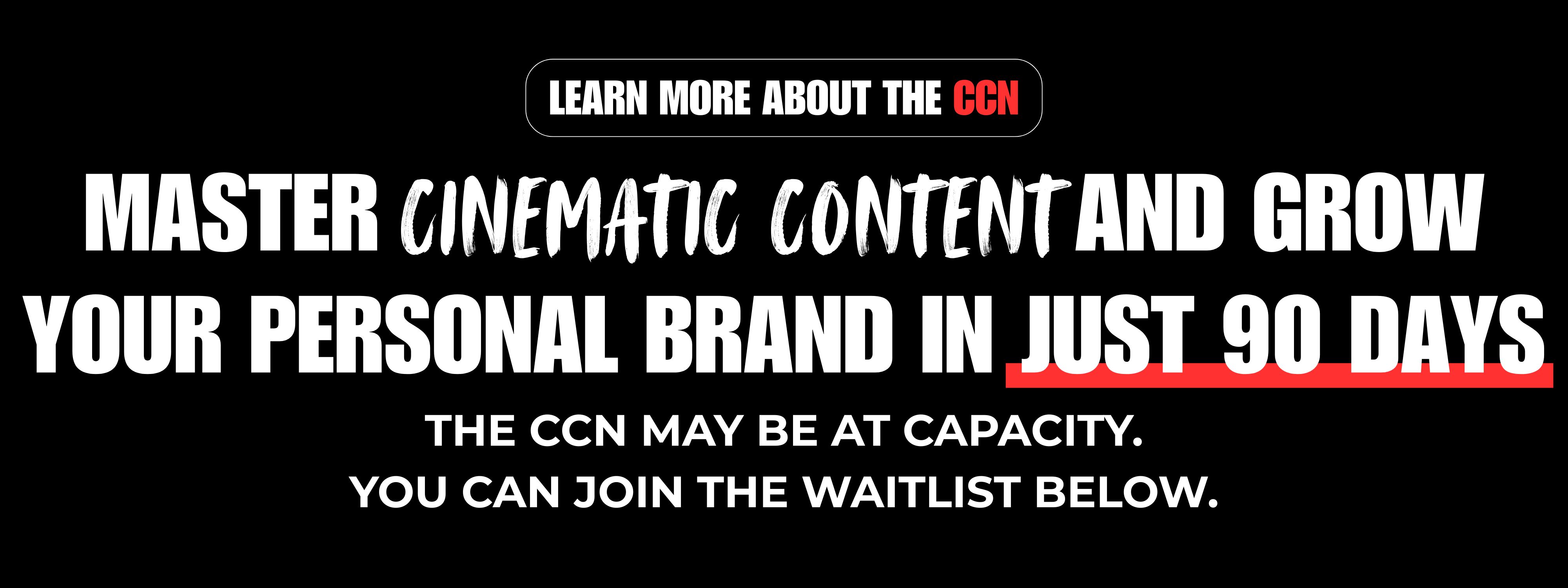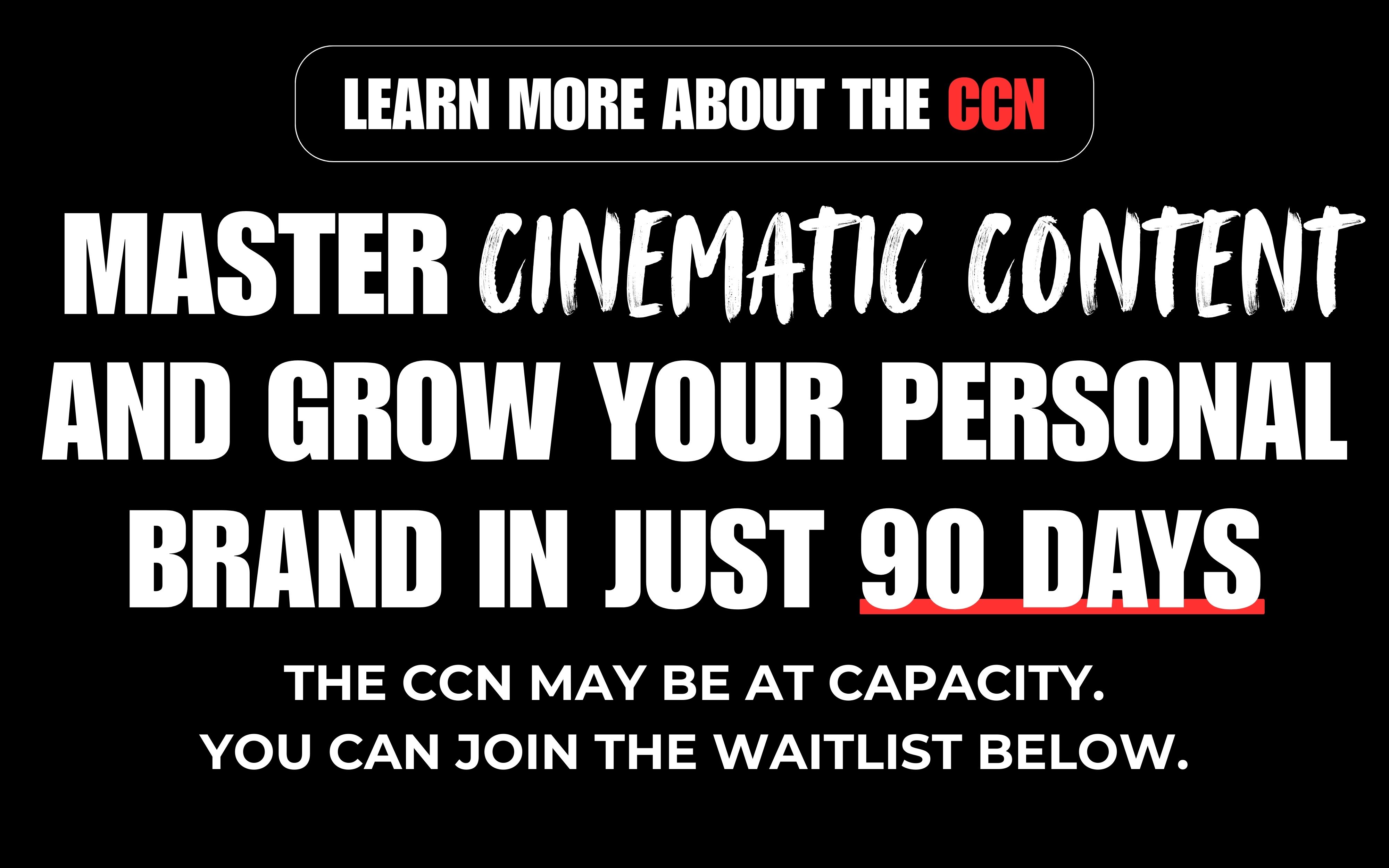 “Joining the CCN was a game-changer! Before joining the CCN, I was struggling to create high-quality content that truly stood out. I thought I needed expensive gear and years of experience to improve, which held me back from even trying. At first, I wasn’t sure if the program would actually help, but I decided to give it a shot, and I’m so glad I did. The lessons were practical, easy to apply, and didn’t require a huge time investment. Within just a few weeks, my content improved drastically. Now, I’ve not only leveled up my skills as a cinematographer, but my videos are getting more engagement, my storytelling is sharper, and I feel confident creating professional-level content. If you’re on the fence, just do it, it’s 100% worth it!”