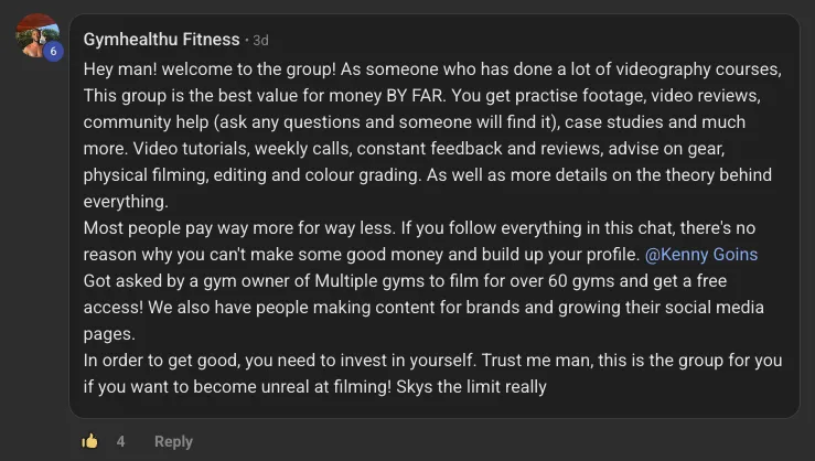 “Before joining CCN I was struggling with how to create content centred around the gym and the steps I needed to take to improve my content. CCN shows you everything you need to know to take your cinematic gym content to the next level, super easy to understand and great community!”