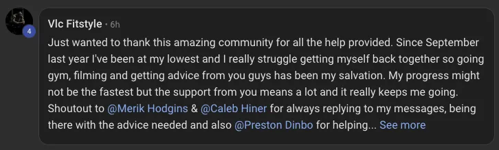 “Before joining the CCN, I was struggling with making content that would stick out to other people and influence people to get to the gym and be where I am today, but after taking this course and improving my content I have a lot better ideas I put out to others now.”