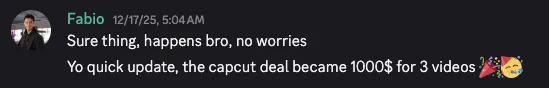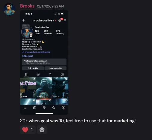“I’ve only been in CCN for 3 months, and I’ve already doubled my followers on IG and TikTok. If you actually watch the videos closely, it’s easy to apply everything to your own content. I’ve put in hours and hours, and it’s paid off. They provide quality work, but at the end of the day, it’s on you to put in the effort and get what you want. I started with no gear, just my phone. Now, I’ve invested in high quality equipment because I love this so much. But here’s the thing, you don’t need expensive gear. The mentors in CCN pushed me to take this seriously, and now I’ve got real opportunities coming my way. My networking has leveled up, I’ve got connections and followers from Asia and Europe. On top of that, I’ve been hired to shoot for a bodybuilder, a barbershop, and a restaurant. If you’re on the fence about CCN, just join. If you put in the work, you will see results.”